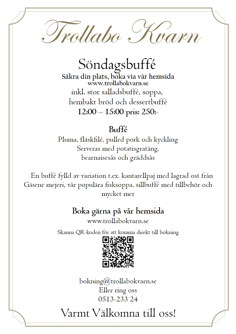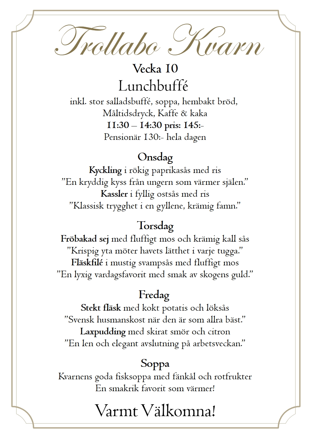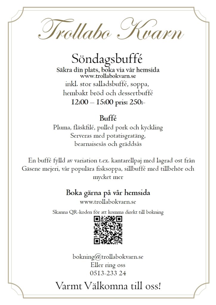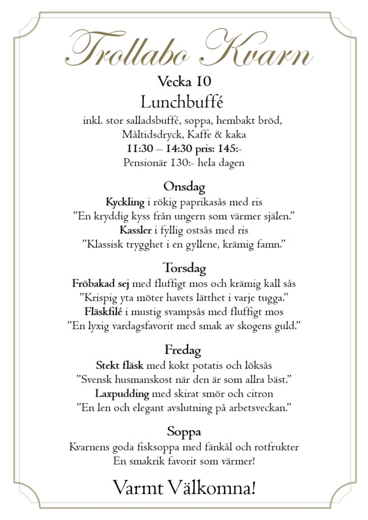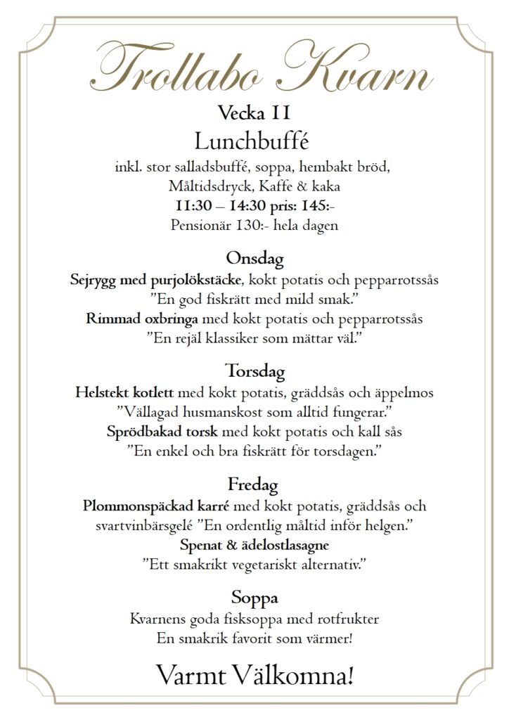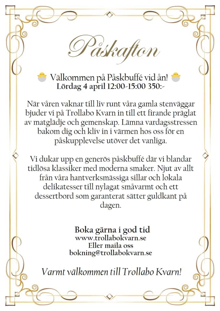 En plats där historien möter nutiden. Vackert belägen vid den pittoreska ån Nossan har kvarnen stått här sedan 1859 och varit en viktig del av bygden. Idag är den omvandlad till en charmig restaurang där du kan njuta av vällagad mat, trivsam atmosfär och den unika känslan av svensk kulturhistoria. Här skapar vi minnesvärda stunder – oavsett om du kommer för en lunch, en afterwork eller ett särskilt tillfälle.