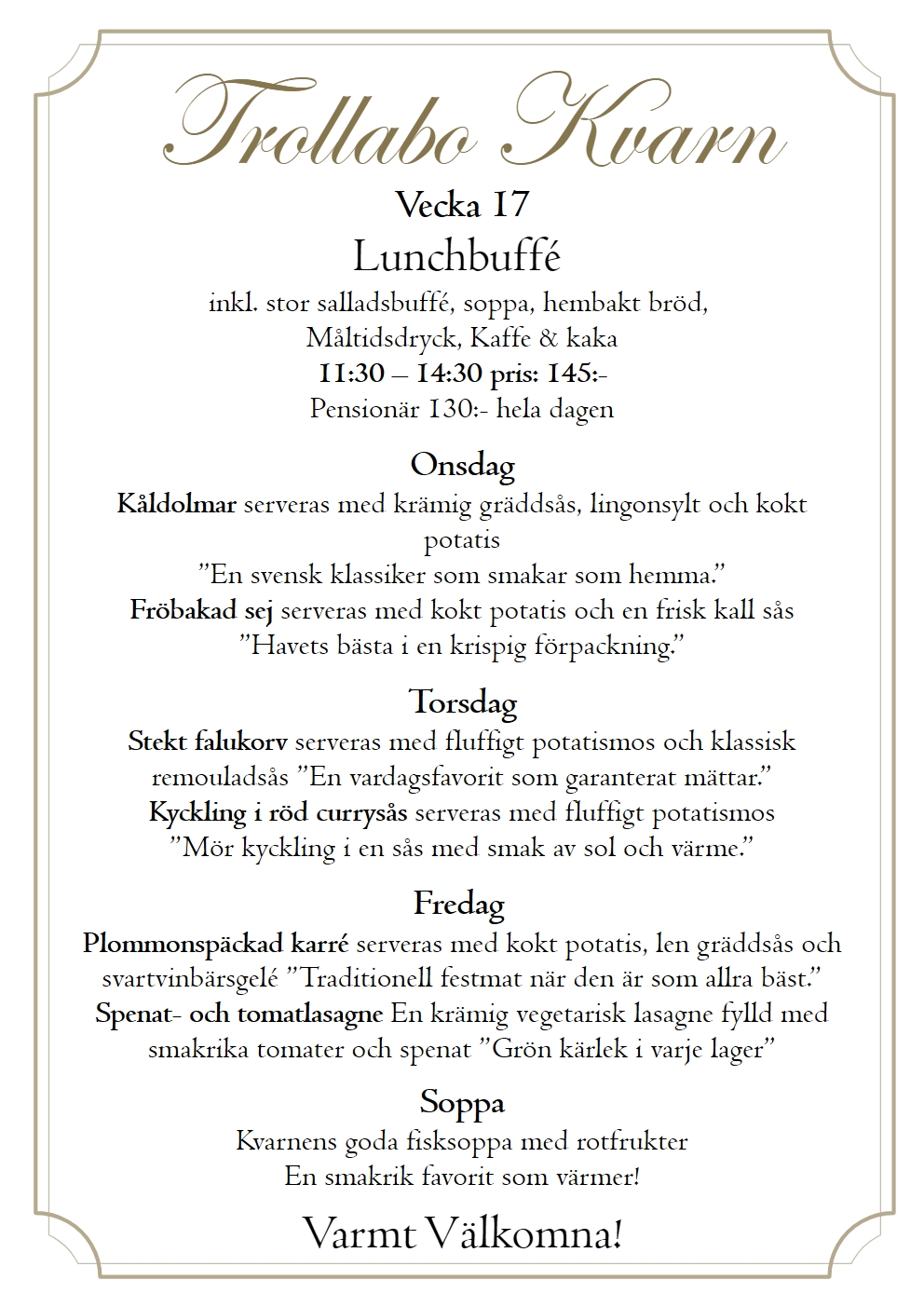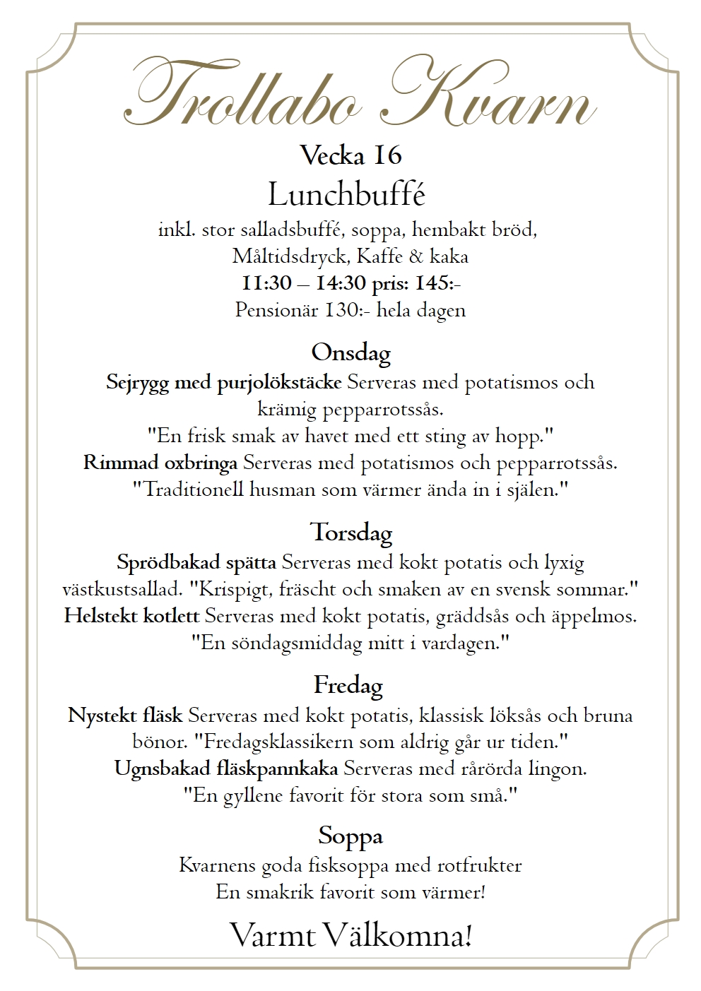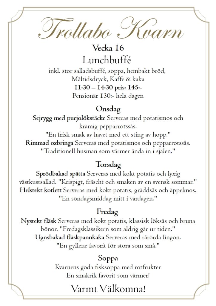 En plats där historien möter nutiden. Vackert belägen vid den pittoreska ån Nossan har kvarnen stått här sedan 1859 och varit en viktig del av bygden. Idag är den omvandlad till en charmig restaurang där du kan njuta av vällagad mat, trivsam atmosfär och den unika känslan av svensk kulturhistoria. Här skapar vi minnesvärda stunder – oavsett om du kommer för en lunch, en afterwork eller ett särskilt tillfälle.